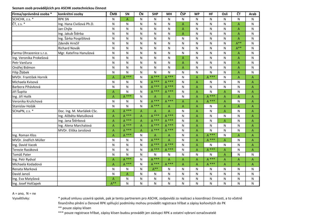 U každého pracovníka si prosím ověřte, zda je pro dané plemeno označen v tabulce výše: